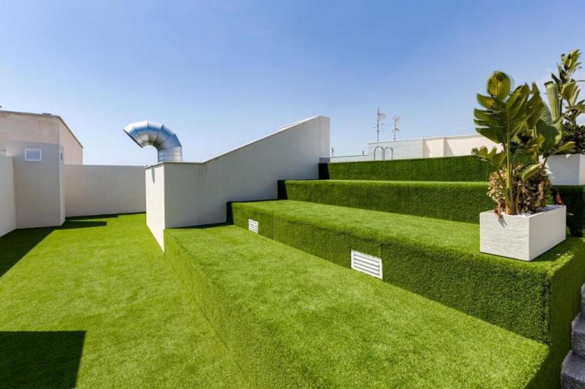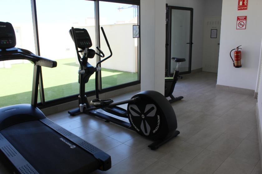 På den soliga takterrassen, med sol hela dagen och vacker havsutsikt, är den gemensamma poolen omgiven av konstgräs och solstolar. Denna semesterlägenhet är bekvämt belägen inom 3 minuters promenad från berömda Playa del Cura och alla faciliteter såsom terrasser, barer, restauranger, etc.
