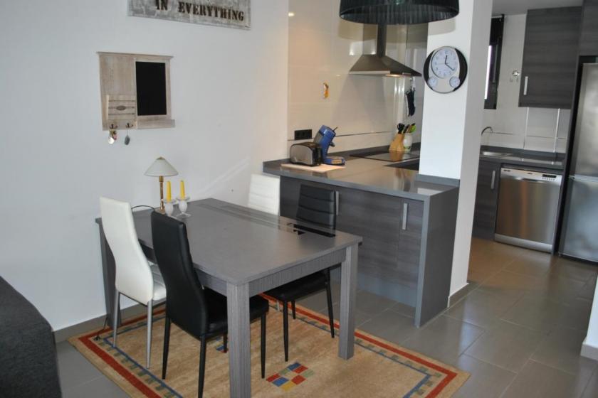 Denna vackra hyreslägenhet i Oasis Beach 4 La Zenia ligger i en bostadspark i den yttersta södern av Costa Blanca, i en plats som kallas Orihuela Costa. Den ligger inom gångavstånd från de fina sandstränderna och alla bekvämligheter som kan tillgodose dina dagliga behov, såsom många affärer, restauranger och det nya köpcentret La Zenia Boulevard samt La Zenia Center och kusten, som båda verkligen är värda ett besök. Den välkända turiststaden Torrevieja ligger också på kort avstånd med bil.