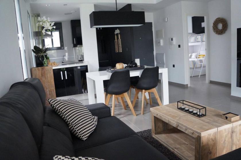 Denna lyxiga och rymliga hörnlägenhet på bottenvåningen i Oasis Beach La Zenia 4 kan rymma upp till fem personer, vilket är ganska unikt i denna urbanisering, eftersom de flesta lägenheterna är utrustade för högst fyra personer. Det finns två sovrum, vardera med en dubbelsäng, varav ett har en våningssäng som en bonus, och varje rum har ett välutrustat badrum, ett med badkar och ett med dusch.