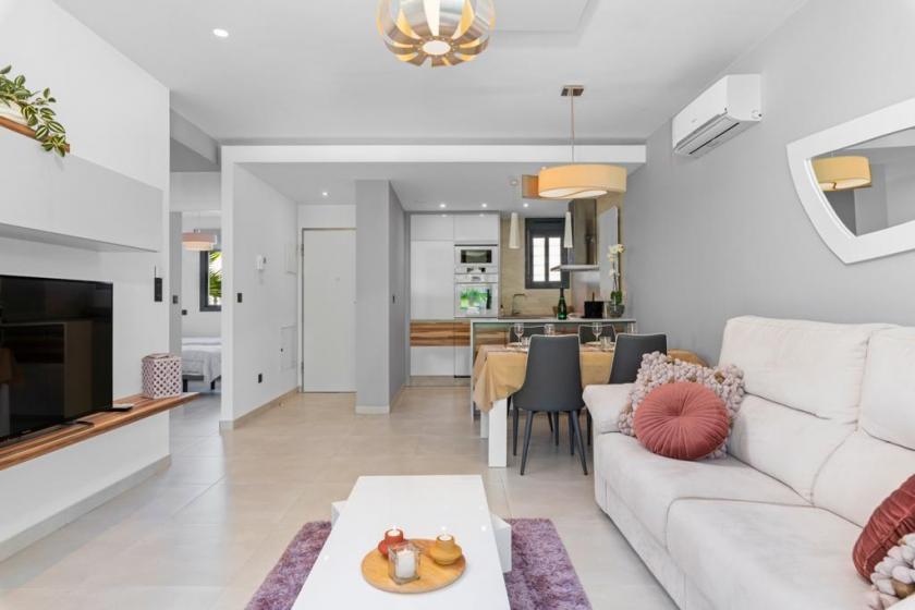 Vardagsrummet inkluderar luftkonditionering, varm och kall, SAT-TV och WiFi. Lägenheten är helt färdigställd med de finaste materialen och i enlighet med de nya europeiska standarderna. Komplexet är säkert och skyddat, och det finns en underjordisk parkeringsgarage.