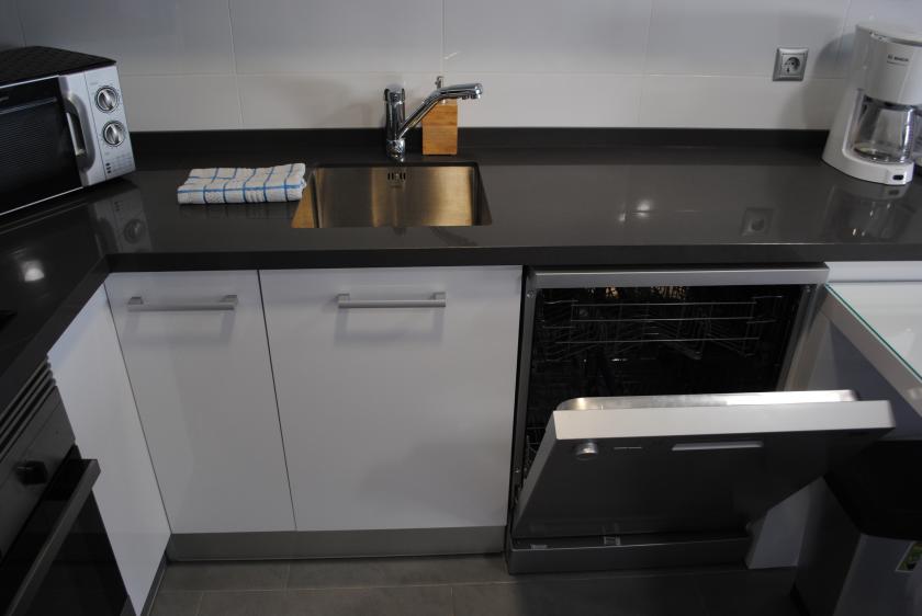 Det moderna köket är fullt utrustat med induktionsspis och diskmaskin. Från den södervända terrassen, som är möblerad med ett bord + 4 stolar, har du spektakulär havsutsikt och utsikt över den vackert anlagda gemensamma trädgården där du hittar poolen. En lägenhet där du kan njuta fullt ut av havet, stranden, naturen och de många tjänster som finns här. Allt detta ligger inom gångavstånd!
