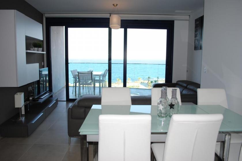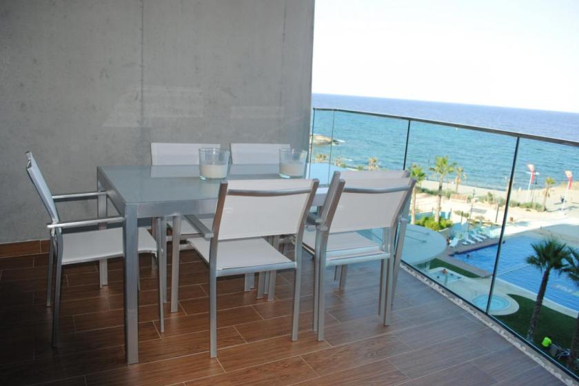 Frontline apartment with Unbeatable Sea Views, excellent finishes and spacious communal areas equipped with all the luxuries. From the balcony ( 17m2 on the 4th. floor ) you can also enjoy beautiful views to the communal areas, the swimming-pools and promenade, the natural park of Cala Ferris and even the port and city of Torrevieja.