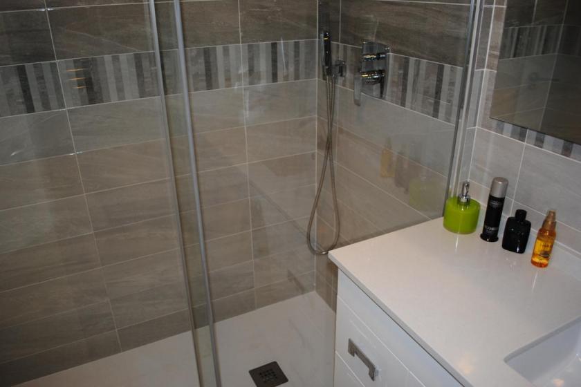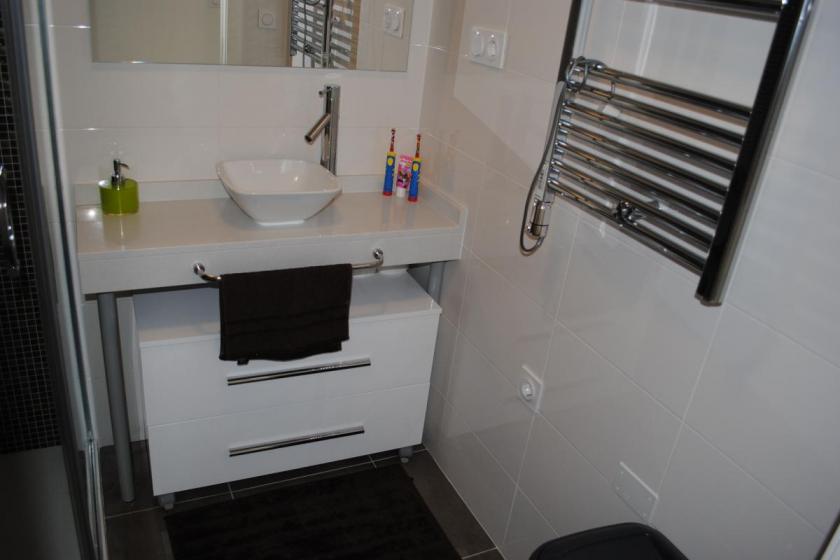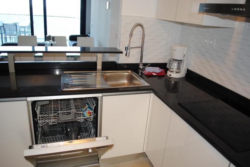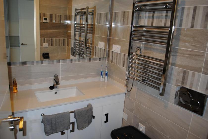 The apartment has a large living room furnished with dining table, leather sofas, two bedrooms with 1 x 2 + 2 x 1 sleeps. There is a LCD TV on the masterbedroom, 2 bathrooms with walk in shower + shower facility, air conditioning, LCD TV with international channels and WIFI. The open kitchen is fully equipped with the necessary facilities, such as as dishwasher. There is also hot-water heating which ensures a comfortable indoor climate in the winter months.