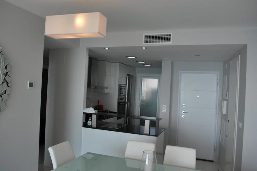 Denna lägenhet har utmärkta finishar och rymliga gemensamma områden utrustade med alla lyxigheter. Från balkongen (17 m² på 7:e våningen) kan du också njuta av vacker utsikt över de gemensamma områdena, poolerna, promenaden, Cala Ferris naturpark och till och med hamnen och staden Torrevieja.