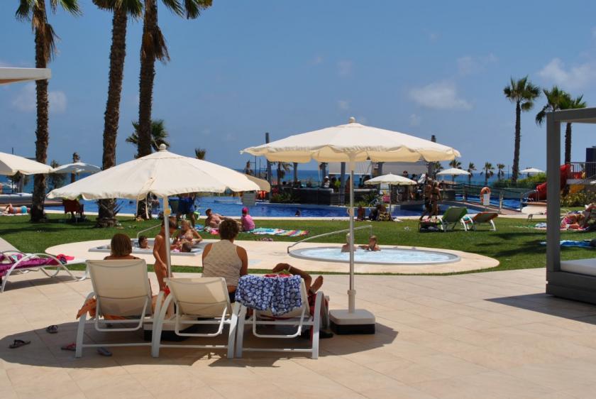 Njut av oändliga pooler med utsikt över Medelhavet (en av dem är uppvärmd), koppla av på vattenbäddar eller i något av de olika uppvärmda bubbelbadkarna. Håll dig i form med olika sportbanor för padeltennis, fotboll eller basket, eller träna på det fantastiska gymmet med glasfront som ger panoramautsikt över havet.