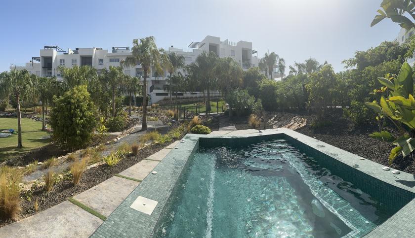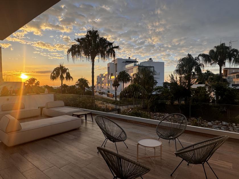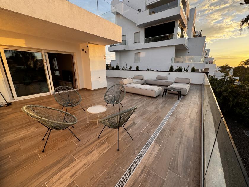 - Orientering: Lägenheten vetter mot söder och är fullt möblerad med integrerad luftkonditionering och motoriserade persienner. Njut av den rymliga privata terrassen på 128 m², som har utsikt över den gemensamma poolen och trädgården.