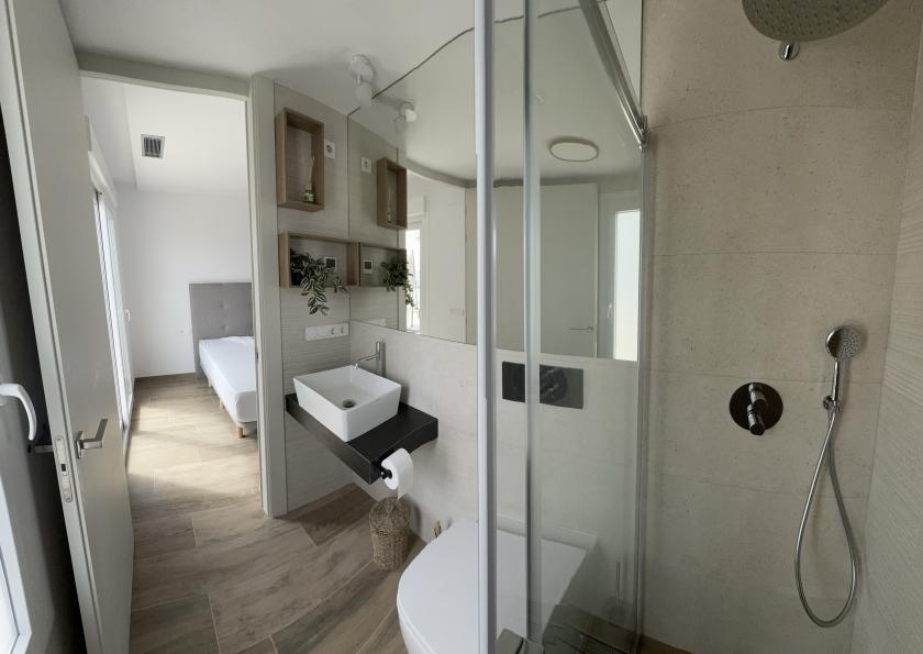 - Badrum: Lägenheten inkluderar 2 moderna badrum utrustade med duschar.