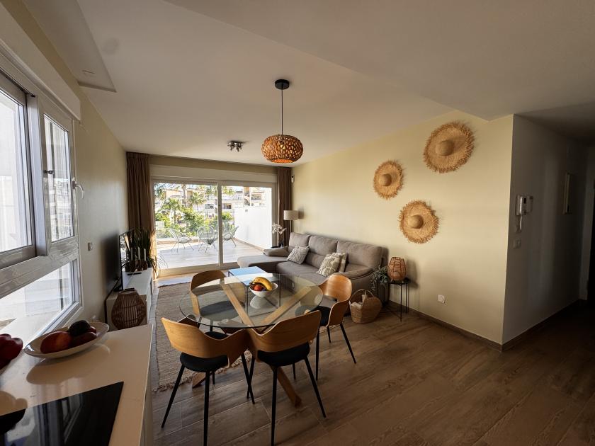 Välkommen till det lyxiga Bali bostadsområdet, beläget i den pittoreska Punta Prima (La Ceñuela), bara en kort promenad från Punta Prima-stranden och den livliga boulevarden. Denna utsökta lägenhet på bottenvåningen erbjuder en perfekt boendeupplevelse för dem som söker komfort och stil.