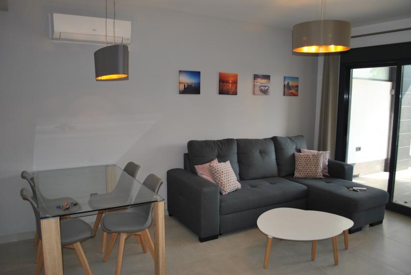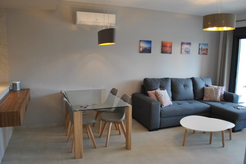 Denna lägenhet på bottenvåningen är smakfullt inredd, lämplig för både unga och gamla och erbjuder all nödvändig komfort under din vistelse. Den är utrustad med luftkonditionering, IPTV INTERNETBASERAT MED EUROPEISKA KANALER OCH FIBEROPTISK WIFI.