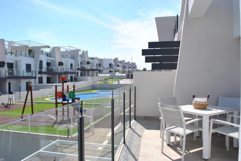 Residencial Saoco - Lägenheter i San Miguel de Salinas. Endast 10 minuters bilresa till stranden och inom gångavstånd från centrum där du hittar alla faciliteter som krävs för dina dagliga behov. Komplexet består av lägenheter på både bottenvåningen och översta våningen. Invånarna i detta komplex kommer att njuta av tillgång till en stor utomhuspool och trädgårdsområde samt en lekplats för barn och ett shoppingområde i närheten som erbjuder ett brett utbud av tjänster.