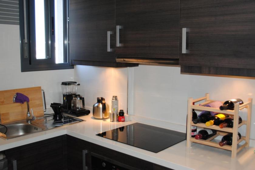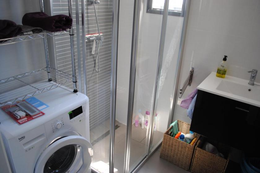 Det finns ett öppet kök med alla nödvändiga apparater, såsom diskmaskin. Master bedroom har eget badrum. Från balkongen har du direkt tillgång till ett privat och fullt utrustat solarium på 55 m² med bord + stolar, loungeset, pergola, grill och utomhuskök. Det finns privat underjordisk parkering tillgänglig.