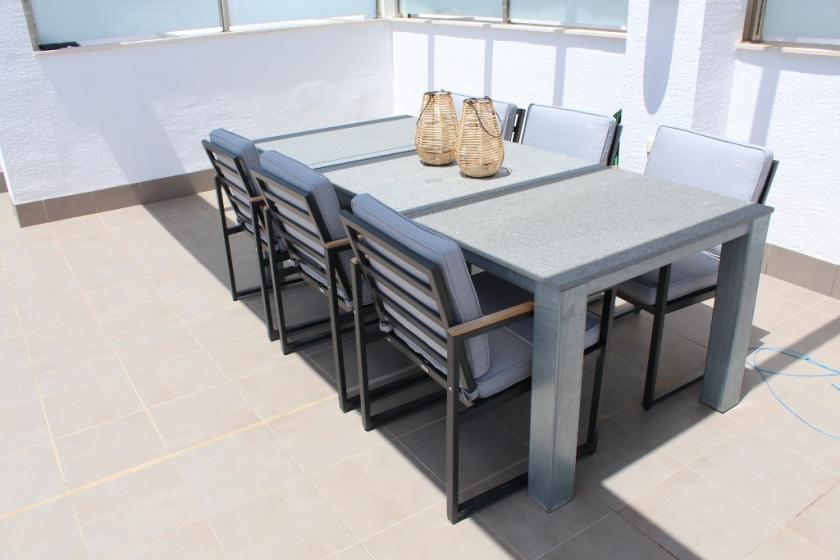 Denna vackra takvåning i La Zenia ligger i Residential Park Oasis Beach 3 i södra Costa Blanca. Inom gångavstånd från sandstranden i La Zenia och nära alla nödvändiga faciliteter för dina dagliga behov, såsom butiker och restauranger. Den berömda och livliga turiststaden Torrevieja ligger på kort avstånd med bil.