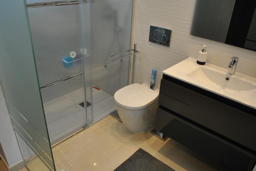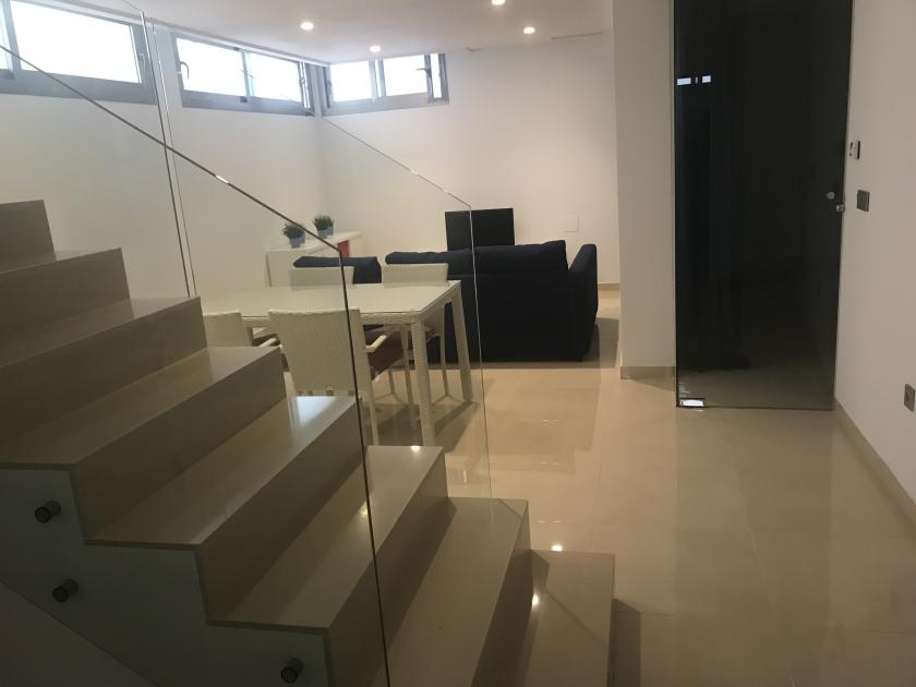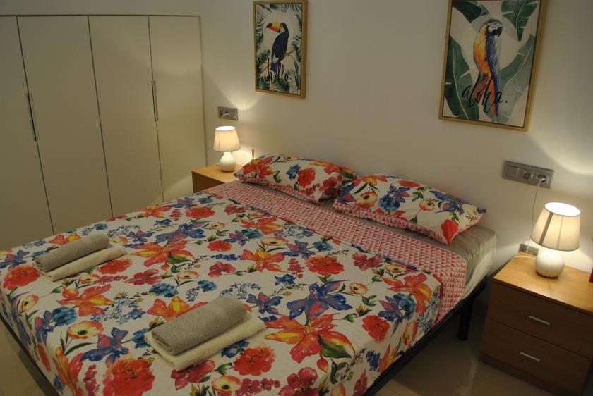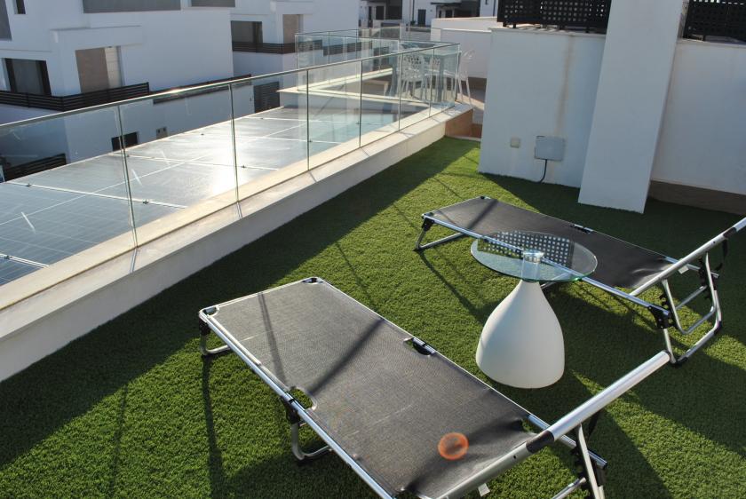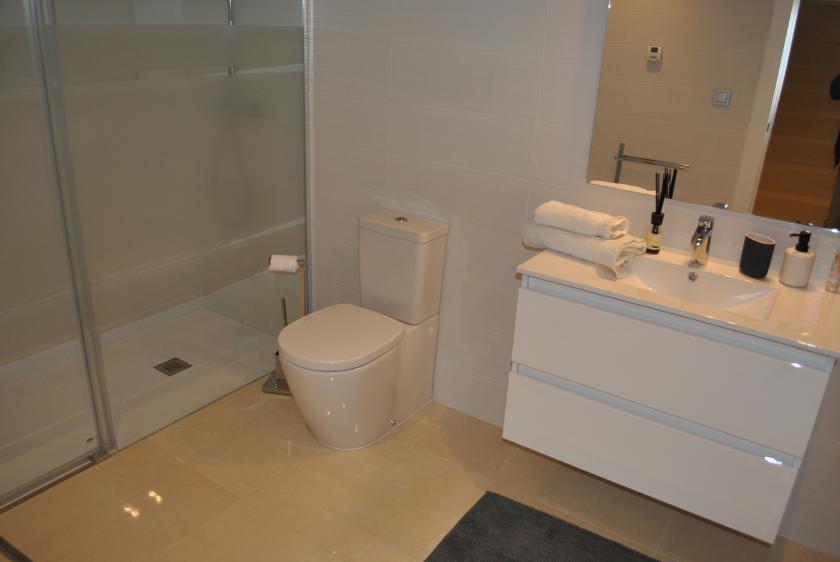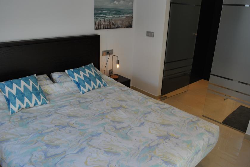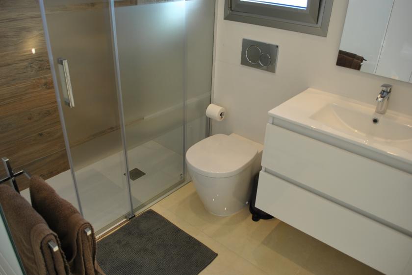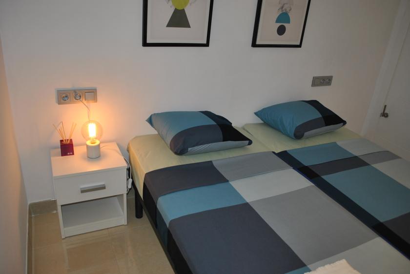 Nere finns ett rymligt vardagsrum med 2 sovrum, ett med 1 dubbelsäng och det andra med 2 enkelsängar, samt 1 badrum med dusch. På övervåningen finns 2 stora sovrum med 2 dubbelsängar, båda med eget badrum med dusch och tillgång till en mycket vacker och rymlig terrass.